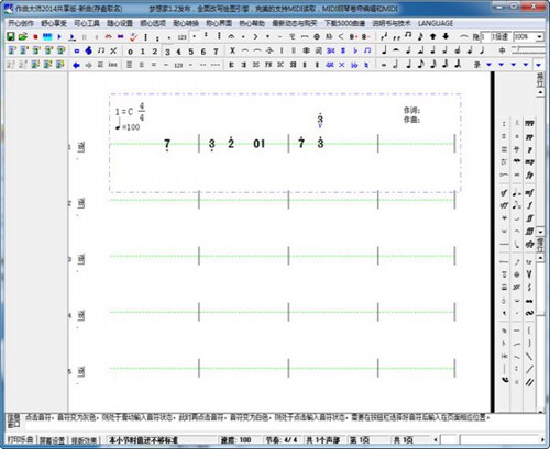 作曲大师2013音乐软件简谱五线谱合一版支持一个音符上写多个简谱弧线,修复多个BUG,操作更人性化。美化了字库。绿色软件,只需一次安装,长期可用。